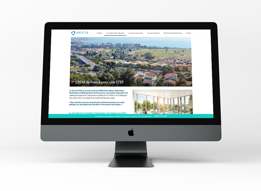 La marque Aeris a été créée dans le cadre de l’accompagnement d’OTV qui répondait à l’appel d’offres lancé par le SYMISCA pour la station d’épuration de Cagnes-sur-Mer.
